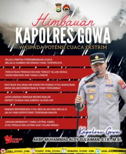 GOWA, EDELWEISNEWS.COM – Kapolres Gowa AKBP Muhammad Aldy Sulaiman, S.I.K., M.Si, mengeluarkan imbauan resmi kepada seluruh masyarakat Kabupaten Gowa untuk meningkatkan kewaspadaan menghadapi potensi cuaca ekstrem yang kian sering terjadi dalam beberapa hari terakhir, Minggu, (30/11/2025). Dalam imbauannya, Kapolres menegaskan pentingnya masyarakat selalu memantau perkembangan cuaca melalui sumber informasi yang terpercaya, terutama peringatan dini dari […]