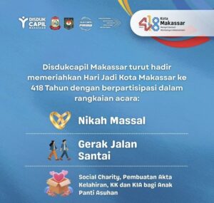 MAKASSAR, EDELWEISNEWS.COM — Dalam rangka memeriahkan Hari Jadi (HUT) Kota Makassar ke-418, Dinas Kependudukan dan Pencatatan Sipil (Disdukcapil) Kota Makassar turut berpartisipasi dengan menghadirkan berbagai kegiatan dan layanan khusus bagi masyarakat. Mulai Jumat (7 November 2025) hingga Minggu (9 November 2025), Disdukcapil akan membuka layanan publik dan kegiatan sosial di area Pelataran Beton Karebosi. Berdasarkan […]