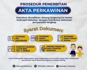 MAKASSAR, EDELWEISNEWS.COM — Dinas Kependudukan dan Pencatatan Sipil (Disdukcapil) Kota Makassar kembali mensosialisasikan prosedur terbaru penerbitan Akta Perkawinan bagi masyarakat non-muslim yang telah melangsungkan pernikahan sesuai ketentuan agama masing-masing. Melalui publikasi resmi melalui akun instagramnya, Disdukcapil menegaskan, bahwa pemohon wajib datang langsung ke Lantor Disdukcapil Makassar dengan membawa seluruh dokumen persyaratan. Sosialisasi ini dilakukan untuk […]