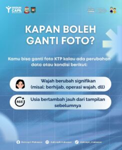 MAKASSAR, EDELWEISNEWS.COM – Dinas Kependudukan dan Pencatatan Sipil (Dukcapil) Kota Makassar memberi pelayanan terbaik bagi warga Kota Makassar. Melalui laman facebook dan IG Dukcapil Kota Makassar, ada kemudahan yang diberikan bagi warga apabila ingin mengganti Foto KTP. Namun, ada syarat yang harus dipenuhi. Menurut Kadis Dukcapil Kota Makassar KTP bisa diperbarui apabila terdapat perubahan data […]