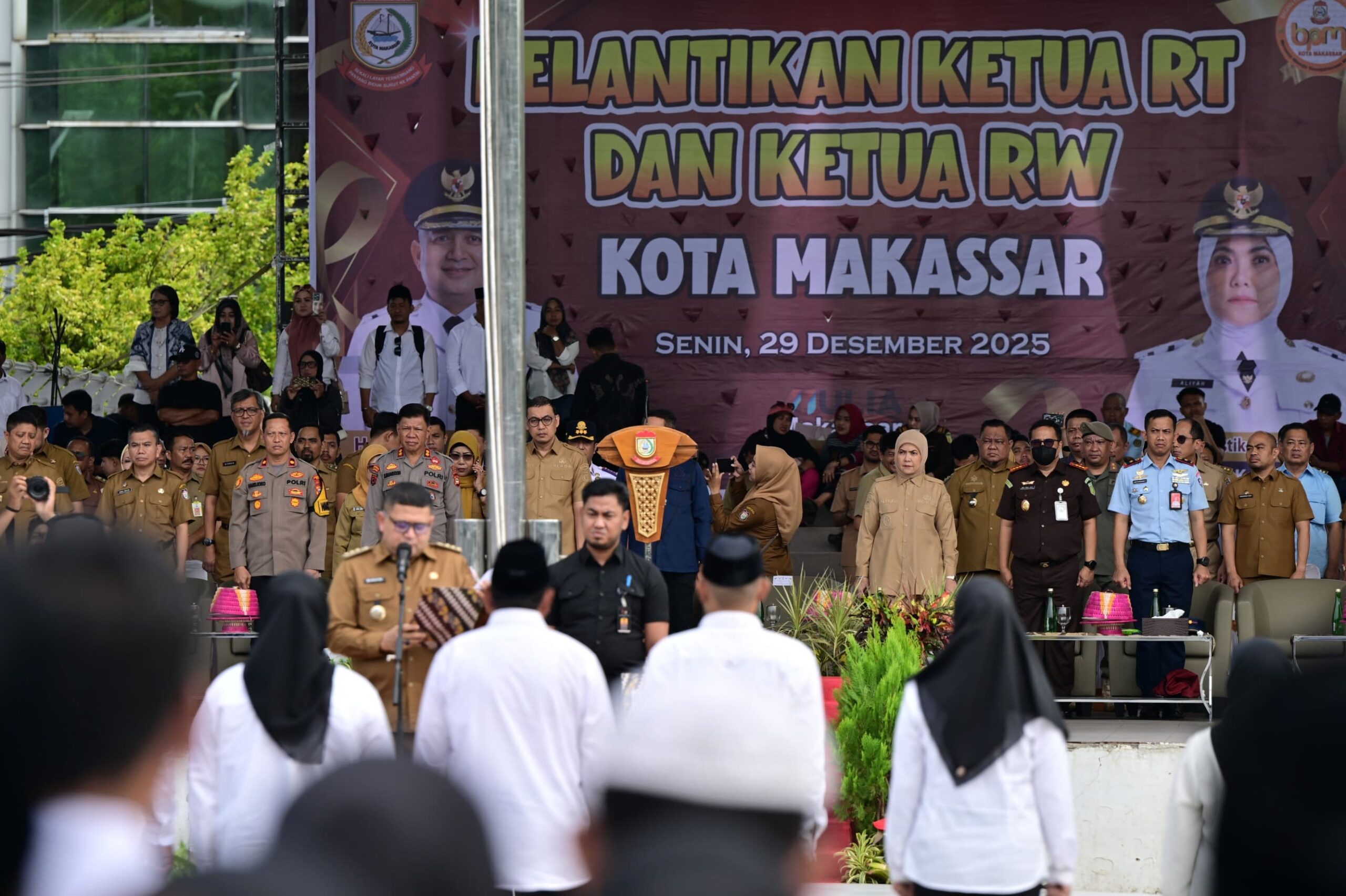 Sebanyak 6.032 Ketua Rukun Tetangga (RT) dan Ketua Rukun Warga (RW) periode 2025–2030 dilantik secara serentak di Lapangan Karebosi, Senin (29/12/2025), menandai sejarah baru demokrasi lokal di Kota Makassar.