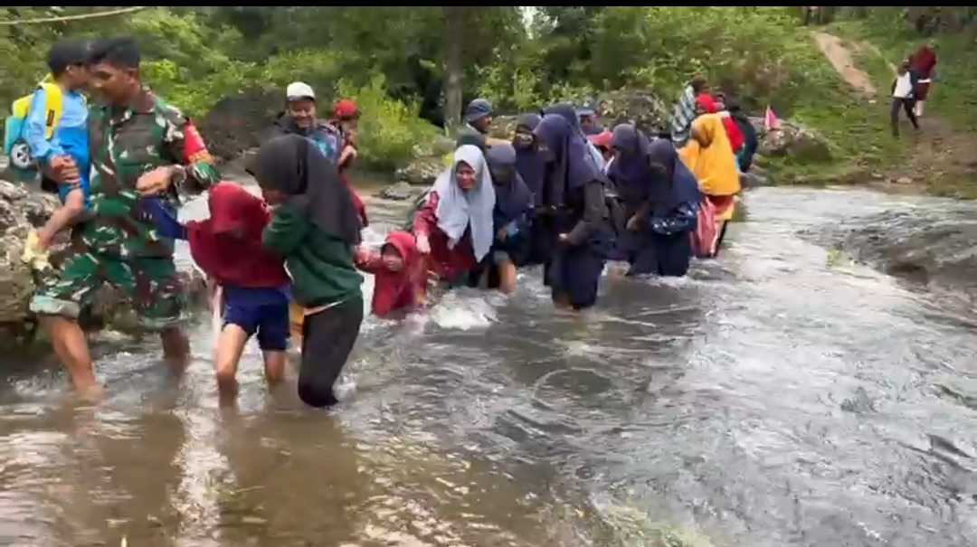 “Sungai ini setiap hari dilewati sekitar 30 anak sekolah mulai dari tingkat SD, SMP hingga SMA. Namun hingga saat ini belum tersedia jembatan. Olehnya itu, sebagai pemerintah desa kami sangat berharap kepada Bapak Presiden Republik Indonesia dan Kepala Staf Angkatan Darat agar dapat membangun jembatan demi kelancaran dan keselamatan aktivitas masyarakat serta anak-anak sekolah yang setiap hari harus menyeberangi sungai tersebut,” ujarnya.