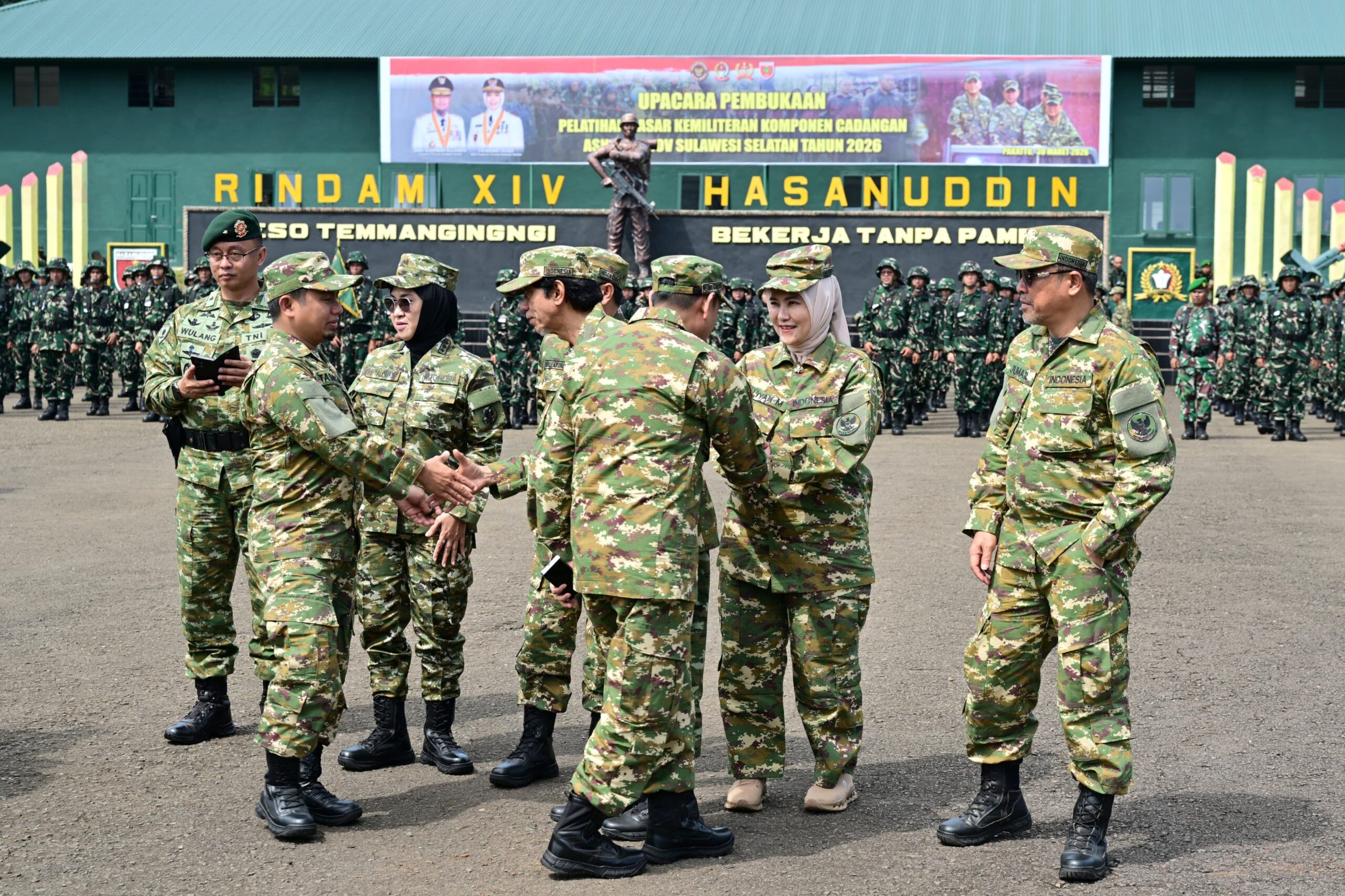 GOWA, EDELWEISNEWS.COM – Wakil Wali Kota Makassar Aliyah Mustika Ilham didampingi Kepala Kesbangpol Kota Makassar Fathur Rahim, menghadiri Upacara Pembukaan Latihan Dasar Militer (Latsarmil) Komponen Cadangan (Komcad) Aparatur Sipil Negara (ASN) dan Kepala Desa di Provinsi Sulawesi Selatan, yang berlangsung di Rindam XIV/Hasanuddin, Desa Mata Allo, Kecamatan Bontomarannu, Kabupaten Gowa, Senin (30/3/2026).