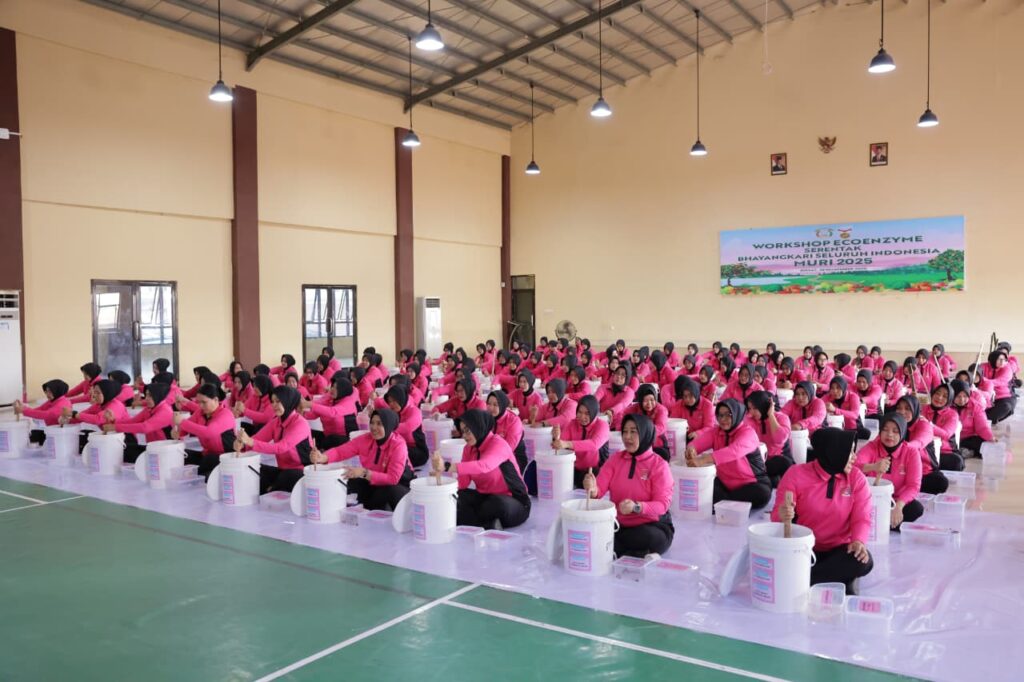 Pelaksanaan workshop secara serentak ini merupakan bagian dari rangkaian kegiatan Bhayangkari menuju pencatatan Museum Rekor Dunia Indonesia (MURI) 2025 atas gerakan ecoenzyme terbesar yang dilakukan secara nasional.