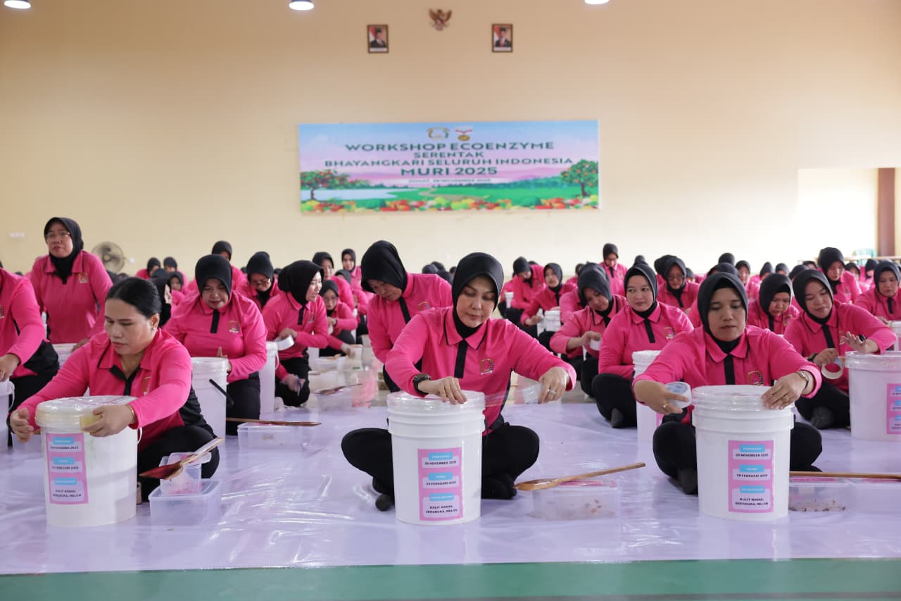 Pelaksanaan workshop secara serentak ini merupakan bagian dari rangkaian kegiatan Bhayangkari menuju pencatatan Museum Rekor Dunia Indonesia (MURI) 2025 atas gerakan ecoenzyme terbesar yang dilakukan secara nasional.