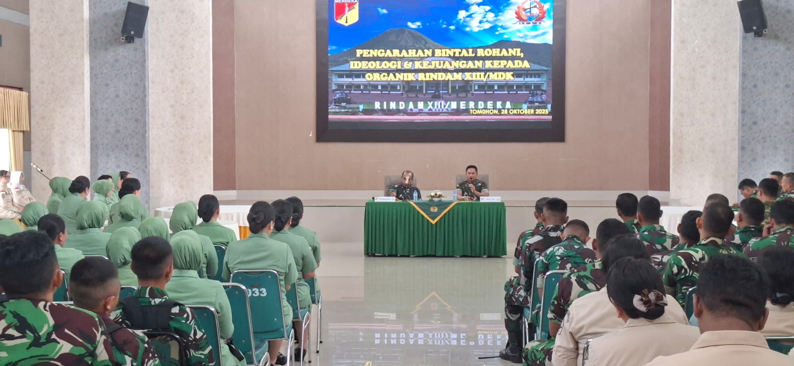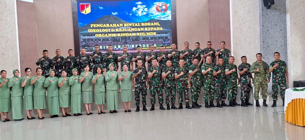 TOMOHON, EDELWEISNEWS.COM – Dalam upaya memperkuat kualitas mental, ideologi, dan semangat juang prajurit, Badan Pembinaan Mental dan Sejarah Kodam (Bintaljarahdam) XIII/Merdeka menggelar kegiatan Pembinaan Mental Rohani, Ideologi, dan Kejuangan Triwulan IV Tahun 2025 di Makorindam XIII/Merdeka, aula Daan Mogot Rindam XIII/Mdk, Selasa (28/10/2025).