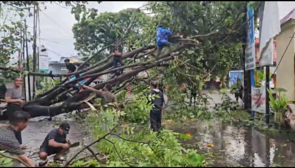 Hanya saat ini pihaknya sedang melakukan asesmen, koordinasi, pemotongan pohon tumbang, melakukan pembersihan area sekitar kejadian.