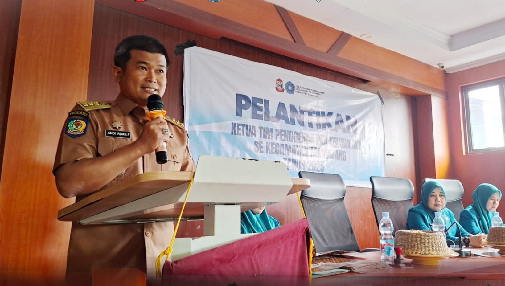 MAKASSAR, EDELWEISNEWS.COM – Camat Mamajang, Andi Irdan Pandita, S.STP., M.Si, mendampingi Ketua TP PKK Kecamatan Mamajang, Andi Syarti Irdan, S. Psi, pada Pelantikan dan Serah Terima Jabatan Ketua TP PKK Kelurahan se-Kecamatan Mamajang, yang dirangkaikan dengan Pengukuhan Ketua Bunda PAUD Kelurahan se-Kecamatan Mamajang yang berlangsung di Aula Kantor Camat Mamajang, Kamis (13/11/2025).