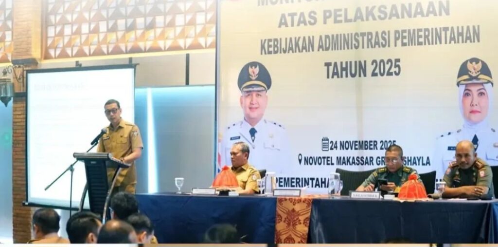 MAKASSAR, EDELWEISNEWS.COM – Camat Tallo, Kota Makassar Ramli Lallo, S.Sos, M.Si didampingi Lurah se – Kecamatan Tallo dan staf Seksi Pemerintahan menghadiri Rapat Monitoring dan Evaluasi (Monev) atas Pelaksanaan Kebijakan Administrasi Pemerintahan Tahun 2025 yang digelar Pemkot Makassar di Hotel Novotel Makassar, Senin (24/11/2025).
