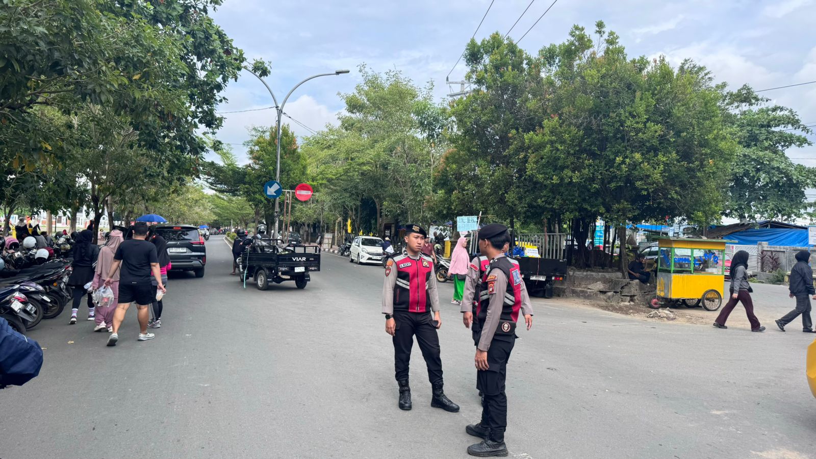 Selain itu, petugas turut melaksanakan pengaturan arus lalu lintas di sekitar gereja, guna mencegah kemacetan dan memberikan kenyamanan bagi masyarakat yang sedang beribadah maupun melintas di lokasi tersebut.