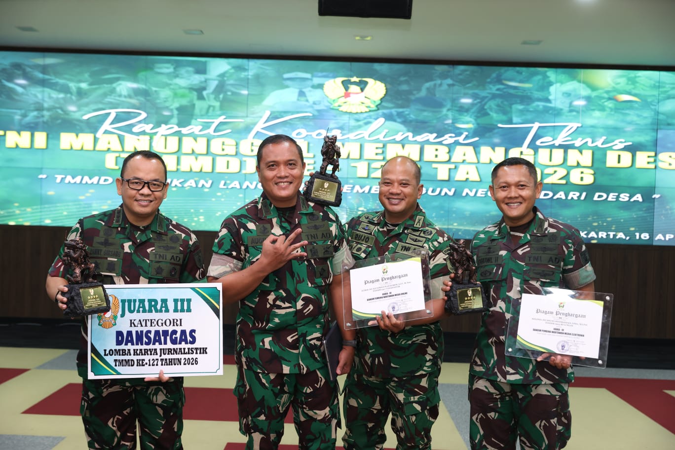 Penghargaan tersebut diumumkan dan diserahkan dalam kegiatan Rapat Koordinasi (Rakor) TMMD ke-128 Tahun 2026, yang berlangsung di Aula A.H. Nasution Mabesad, Jl. Veteran Raya No. 5 RT 3/RW 2, Gambir, Jakarta Pusat, Kamis (16/4/2026).