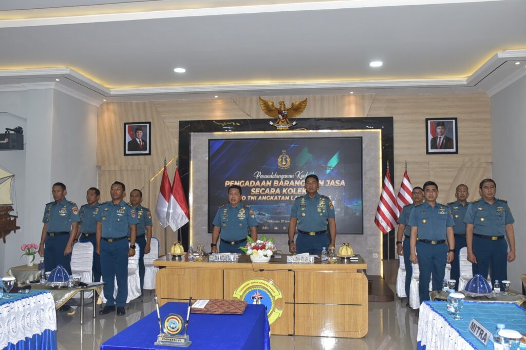 MAKASSAR, EDELWEISNEWS.COM -Komandan Komando Daerah Angkatan Laut (Dankodaeral ) VI Laksamana Muda TNI Andi Abdul Aziz, S.H., M.M, menghadiri penandatanganan kontrak pengadaan barang dan jasa secara kolektif UO TNI AL Tahun 2026 yang dipimpin oleh Kepala Staf Angkatan Laut (Kasal), melalui video konferensi (Vcon.