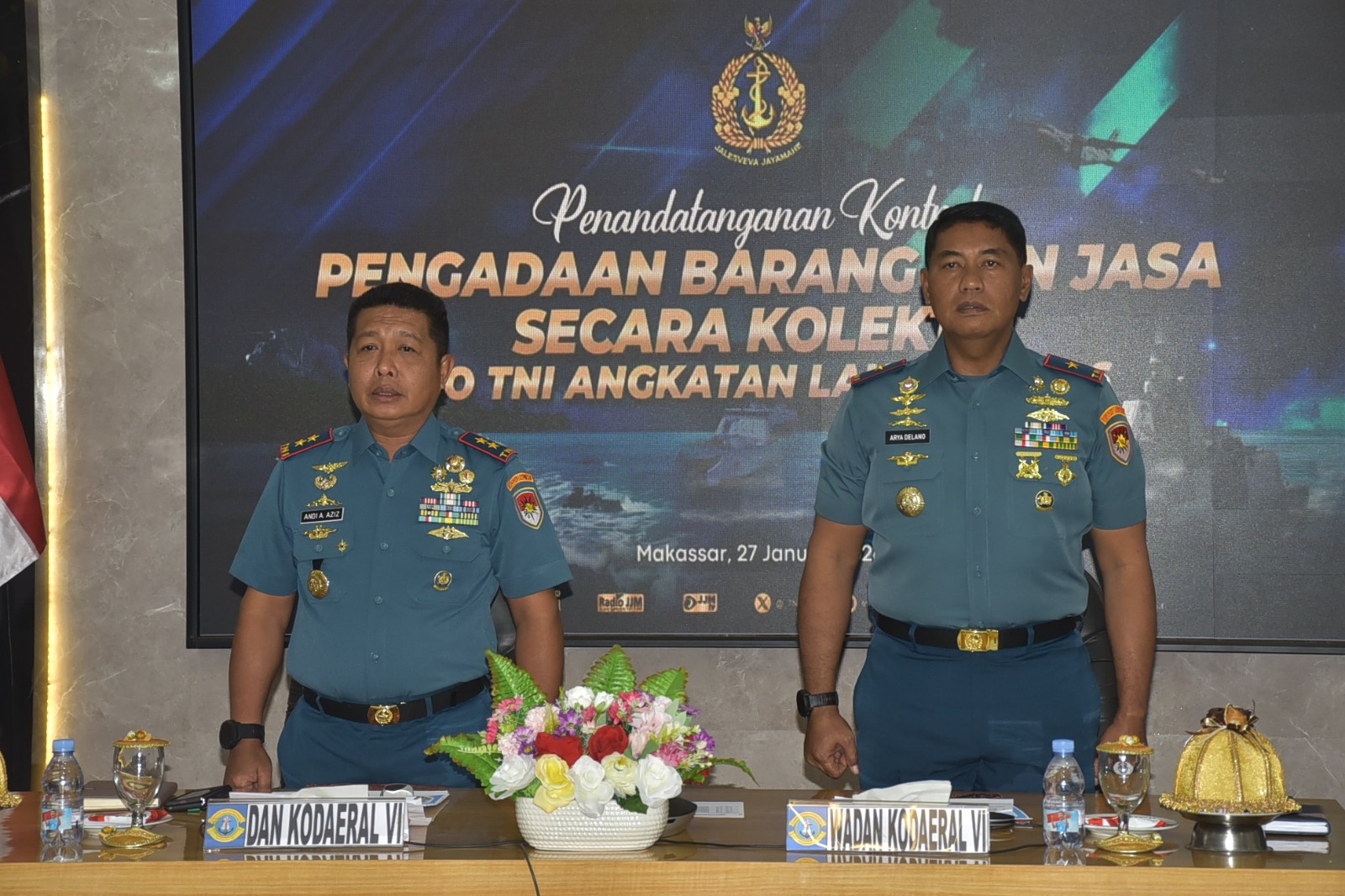 MAKASSAR, EDELWEISNEWS.COM -Komandan Komando Daerah Angkatan Laut (Dankodaeral ) VI Laksamana Muda TNI Andi Abdul Aziz, S.H., M.M, menghadiri penandatanganan kontrak pengadaan barang dan jasa secara kolektif UO TNI AL Tahun 2026 yang dipimpin oleh Kepala Staf Angkatan Laut (Kasal), melalui video konferensi (Vcon.
