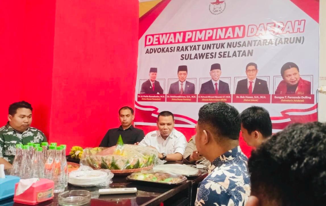 MAKASSAR, EDELWEISNEWS.COM – Dewan Pimpinan Daerah (DPD) Advokasi Rakyat Untuk Nusantara (ARUN) Sulawesi Selatan segera dibentuk. Pengurus DPD ARUN daerah nantinya menjadi ruang aspirasi rakyat Sulsel.