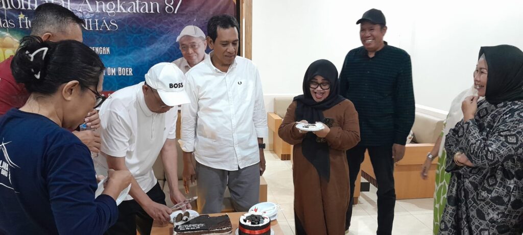 Acara halalbihalal yang diadakan setelah perayaan Idulfitri 1447 Hijriyah itu dirangkaikan dengan syukuran & doa Ulang Tahun untuk Om Boer, yang merupakan Ketua IKA Fakultas Hukum Unhas Angkatan 87.