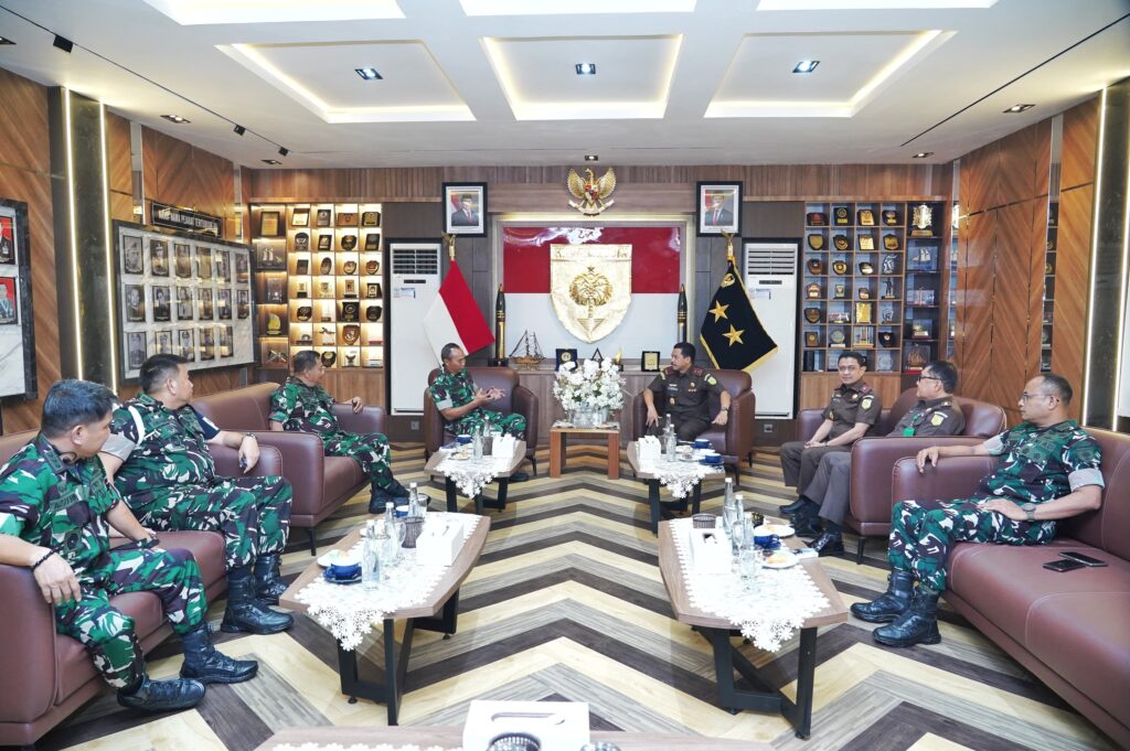 MAKASSAR, EDELWEISNEWS.COM – Pangdam XIV/Hasanuddin Mayjen TNI Windiyatno menerima kunjungan silaturahmi dari Kepala Kejaksaan Tinggi (Kajati) Sulawesi Selatan, Agus Salim, S.H., M.H, bersama rombongan, bertempat di Ruang Tamu Pangdam, Makodam, Jalan Urip Sumoharjo, Kota Makassar, Senin (20/10/2025).