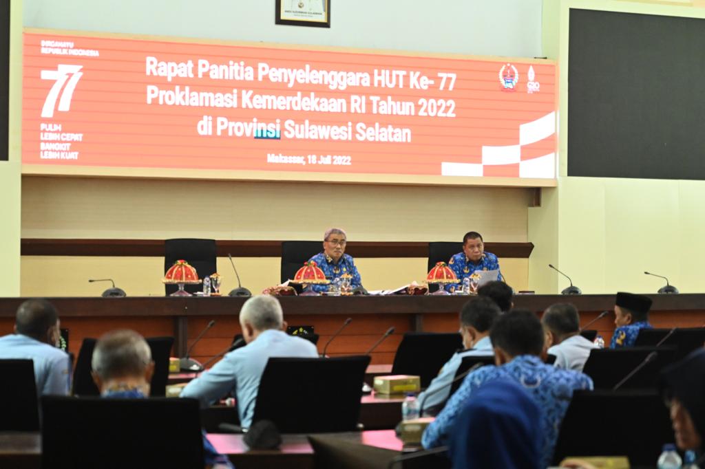 MAKASSAR, EDELWEISNEWS.COM – Jelang HUT Kemerdekaan Republik Indonesia ke-77, Pemerintah Provinsi Sulawesi Selatan menggelar rapat dengan Panitia HUT di Ruang Rapat Pimpinan Kantor Gubernur Sulsel, Senin (18/7/2022).