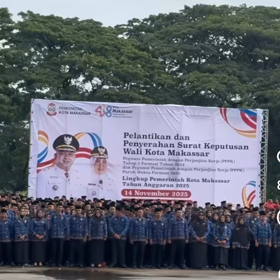 Acara yang digelar pada 14 November 2025 di Lapangan Karebosi Makassar tersebut dihadiri oleh jajaran pimpinan perangkat daerah dan para penerima SK.