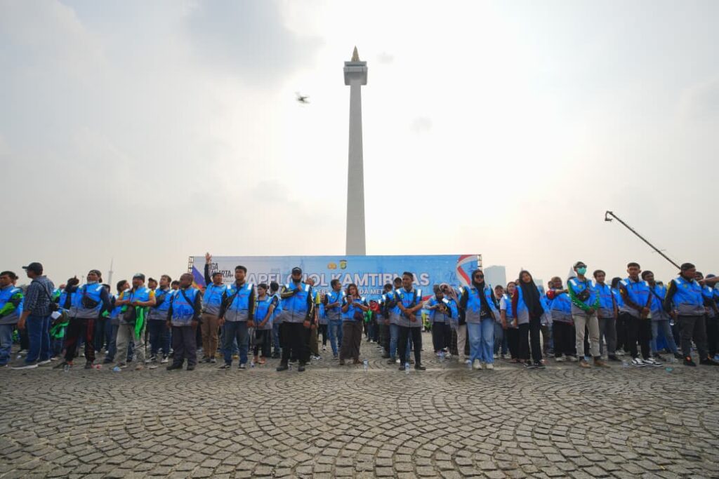 Pantauan di lokasi, ratusan pengemudi ojol hadir dengan mengenakan rompi biru bertuliskan “Jaga Jakarta bersama Polda Metro Jaya”. Suasana apel semakin khidmat ketika Kapolri secara simbolis menyerahkan helm dan rompi kepada perwakilan ojol.
