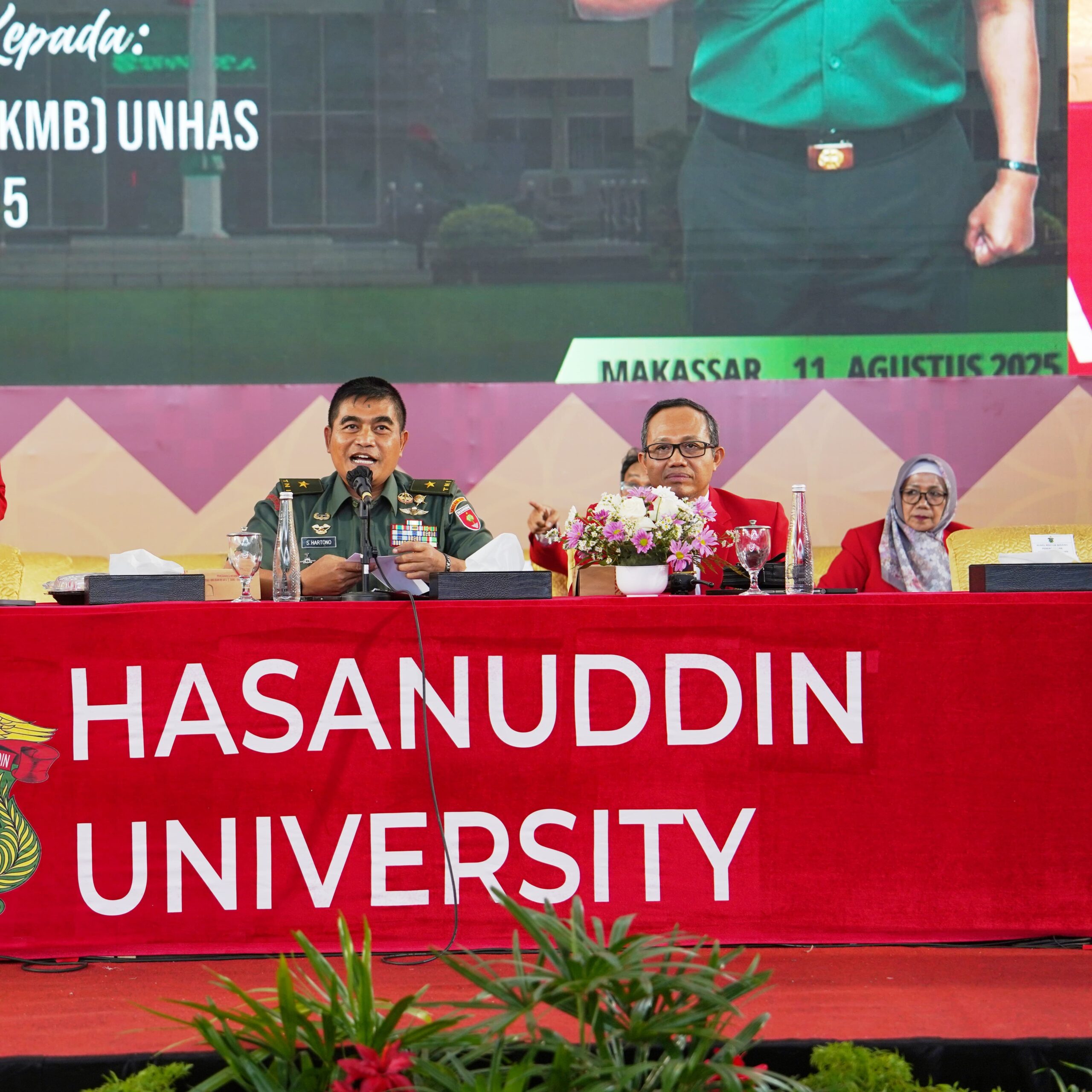 MAKASSAR, EDELWEISNEWS.COM – Kepala Staf Kodam (Kasdam) XIV/Hasanuddin Brigjen TNI Sugeng Hartono, S.E, M.M menjadi Narasumber dalam Pengenalan Kehidupan Kampus bagi Mahasiswa Baru (PKKMB) Universitas Hasanuddin, Senin (11/8/2025).