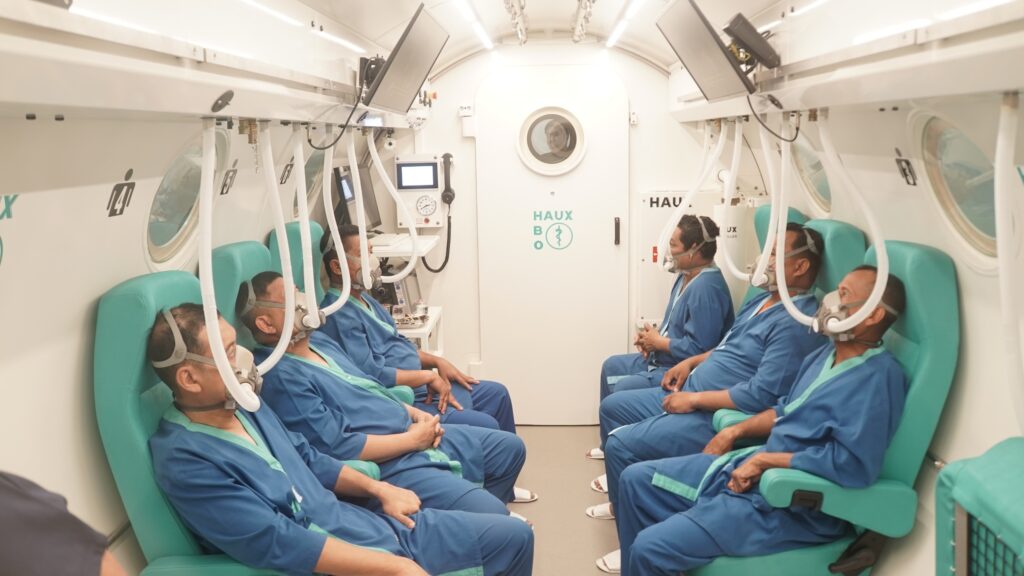 Menariknya, Komandan Kodaeral VI bersama Walikota Makassar beserta jajaran turut merasakan langsung terapi di dalam Hiperbarik Chamber selama satu jam. Pengalaman ini menjadi simbol nyata sinergi dan komitmen bersama dalam memajukan bidang kesehatan maritim dan hiperbarik di kawasan Indonesia Timur.