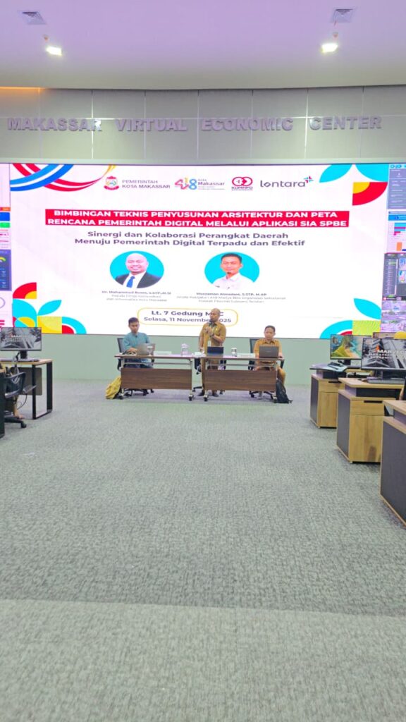 MAKASSAR, EDELWEISNEWS.COM – Dinas Komunikasi dan Informatika (Kominfo) Kota Makassar menggelar Bimbingan Teknis (Bimtek) Penyusunan Arsitektur dan Peta Rencana Pemerintah Digital melalui SIA SPBE. Berlangsung di Gedung Makassar Government Center lantai 7, Selasa (11/11/2025).