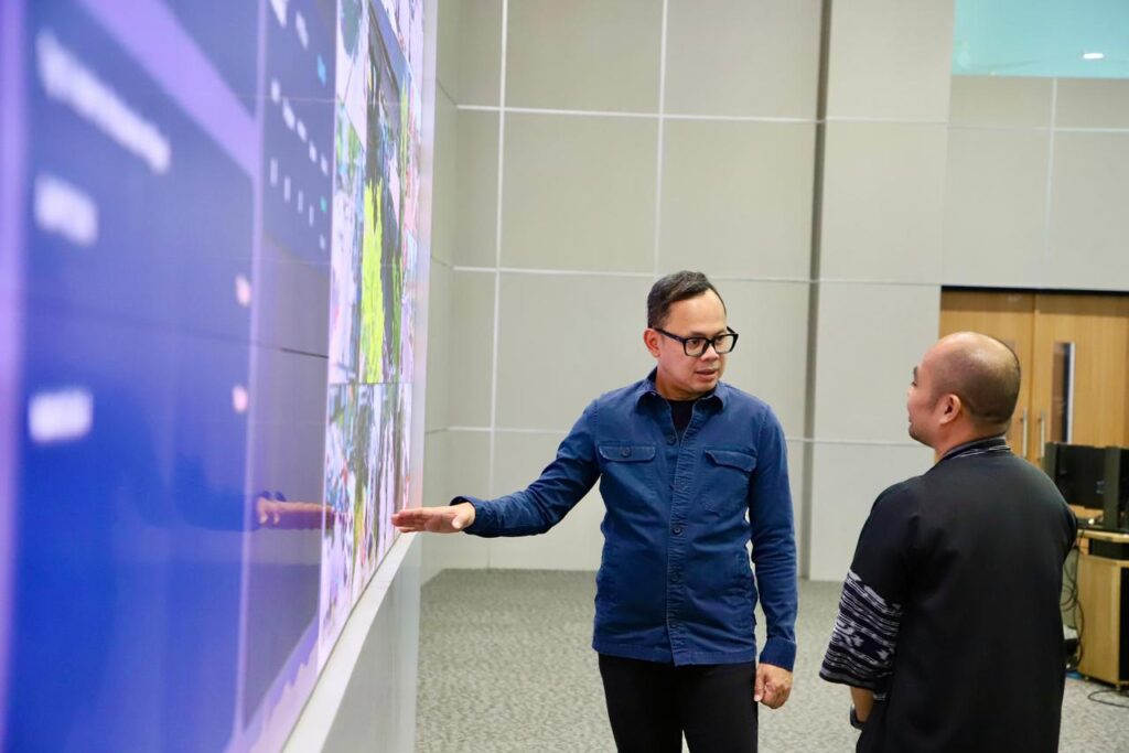 Didampingi Kepala Diskominfo, Dr. Muhammad Roem, Bima Arya tampak mengamati layar-layar besar di lantai 7 Gedung Makassar Government Center (MGC) yang menampilkan data aduan masyarakat, lengkap dengan status tindak lanjutnya, bukti nyata transformasi digital pelayanan publik di Kota Makassar.