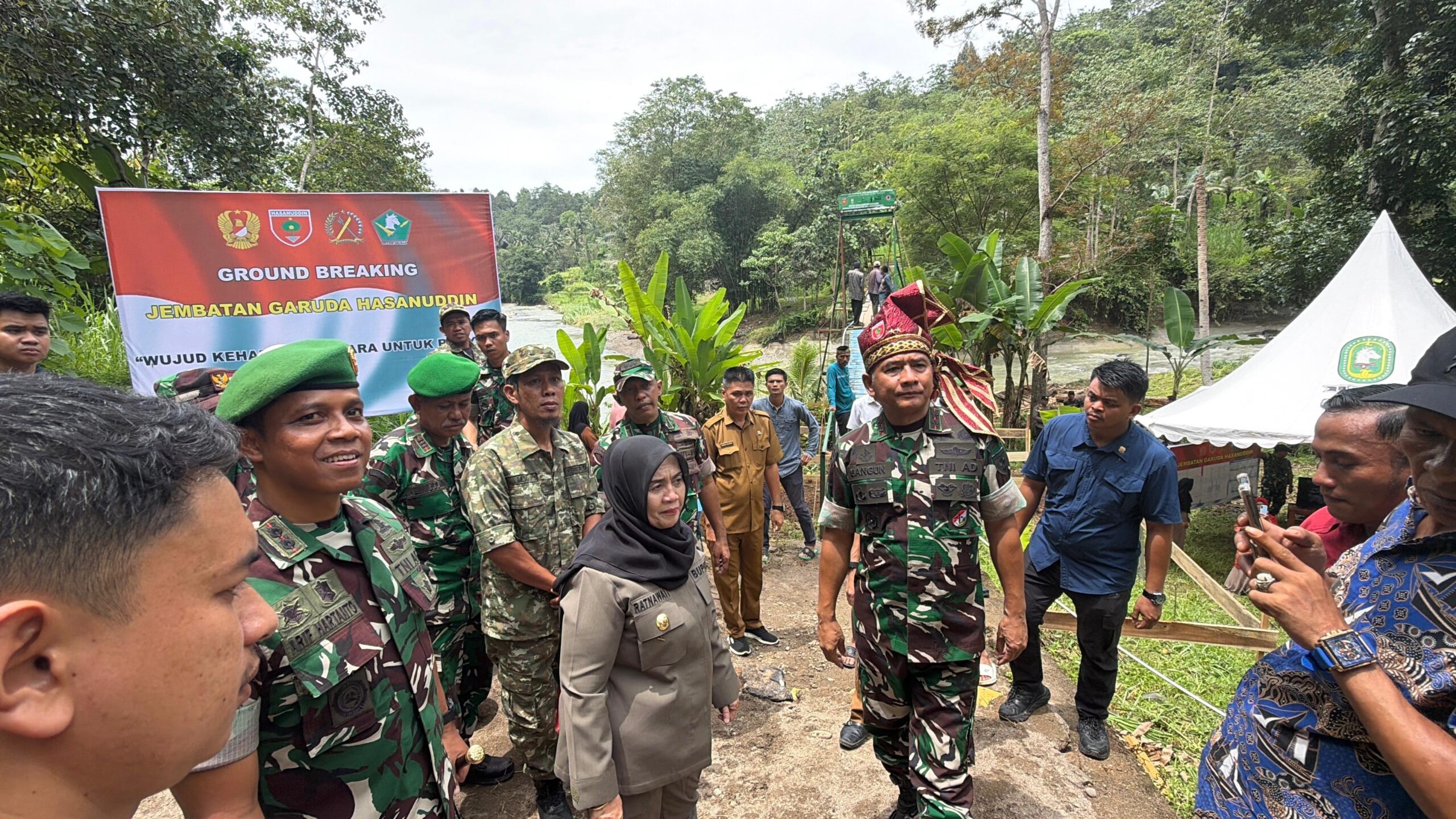 SINJAI, EDELWEISNEWS.COM – Pangdam XIV/Hasanuddin Mayjen TNI Bangun Nawoko didampingi Ketua Persit KCK PD XIV/Hasanuddin Ny. Renny Bangun Nawoko meletakkan batu pertama pembangunan jembatan perintis garuda tahap III.