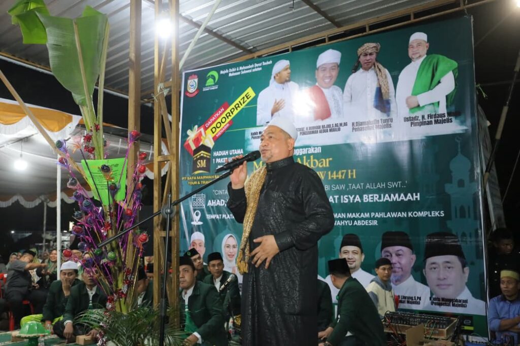 Dalam sambutannya, Munafri yang juga Pembina Majelis Zikir Darut Taubah, menyampaikan rasa syukur dapat kembali hadir bersama jamaah dalam momentum penuh berkah tersebut. Ia menekankan pentingnya menjadikan keteladanan Rasulullah SAW sebagai pedoman utama dalam kehidupan sehari-hari.