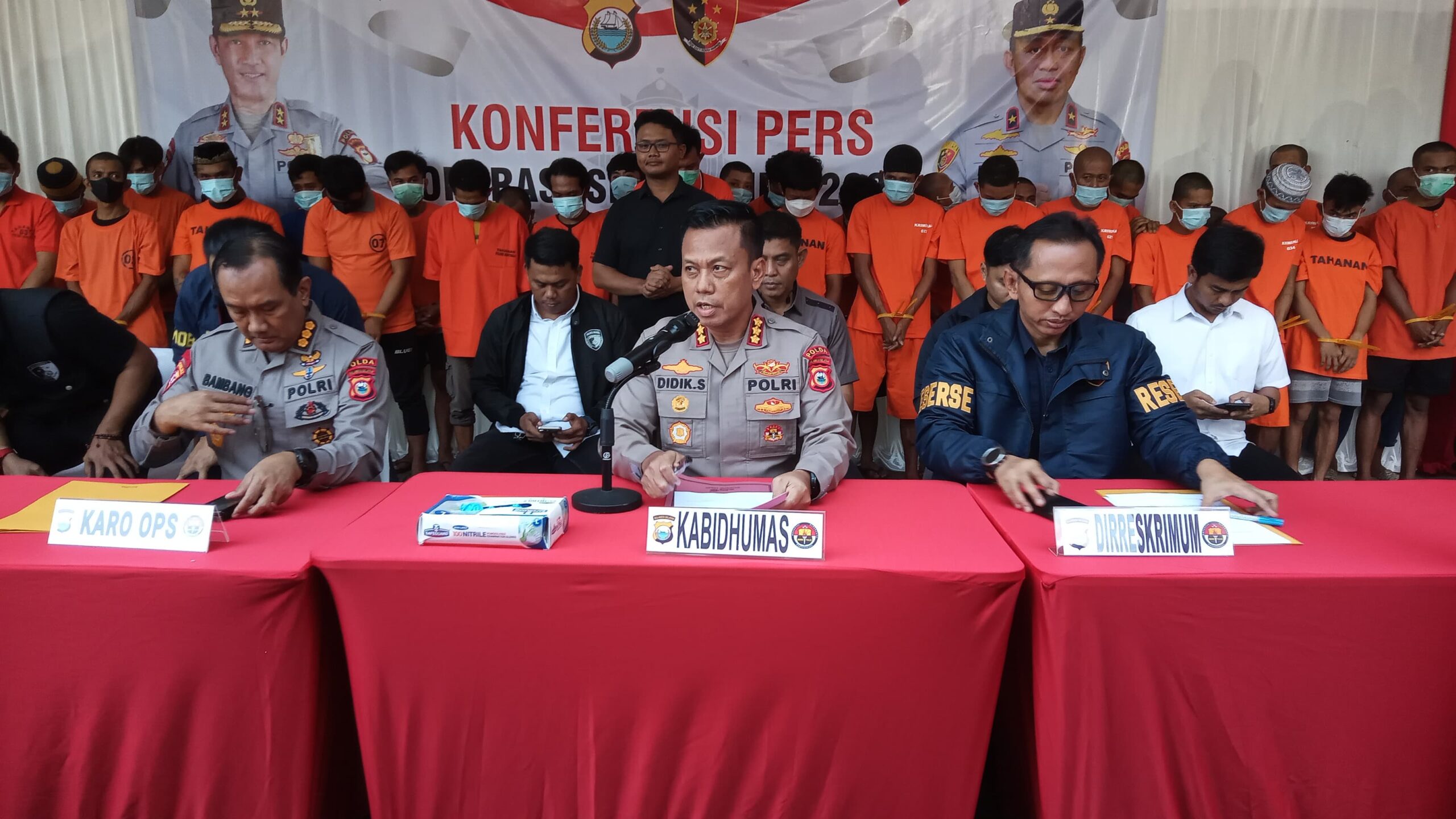 Dalam rilis tersebut, polisi menghadirkan tersangka dari berbagai wilayah di Makassar Raya. Polda Sulsel 7 orang, Polrestabes Makassar 14 orang, Polres Pelabuhan Makassar 3 orang, Polres Gowa 7 orang dan