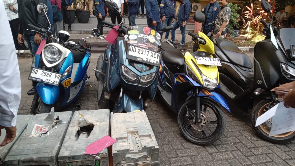 “Dari 411 tersangka, 392 orang berusia dewasa dan 19 masih di bawah umur. Barang bukti yang kami amankan cukup bervariasi. Satu unit bajaj, sembilan motor, 14 ponsel, lima laptop, busur panah, kunci letter T, hingga besi baja,” terang Didik saat konferensi pers di Mapolda Sulsel, Rabu (17/9/2025).