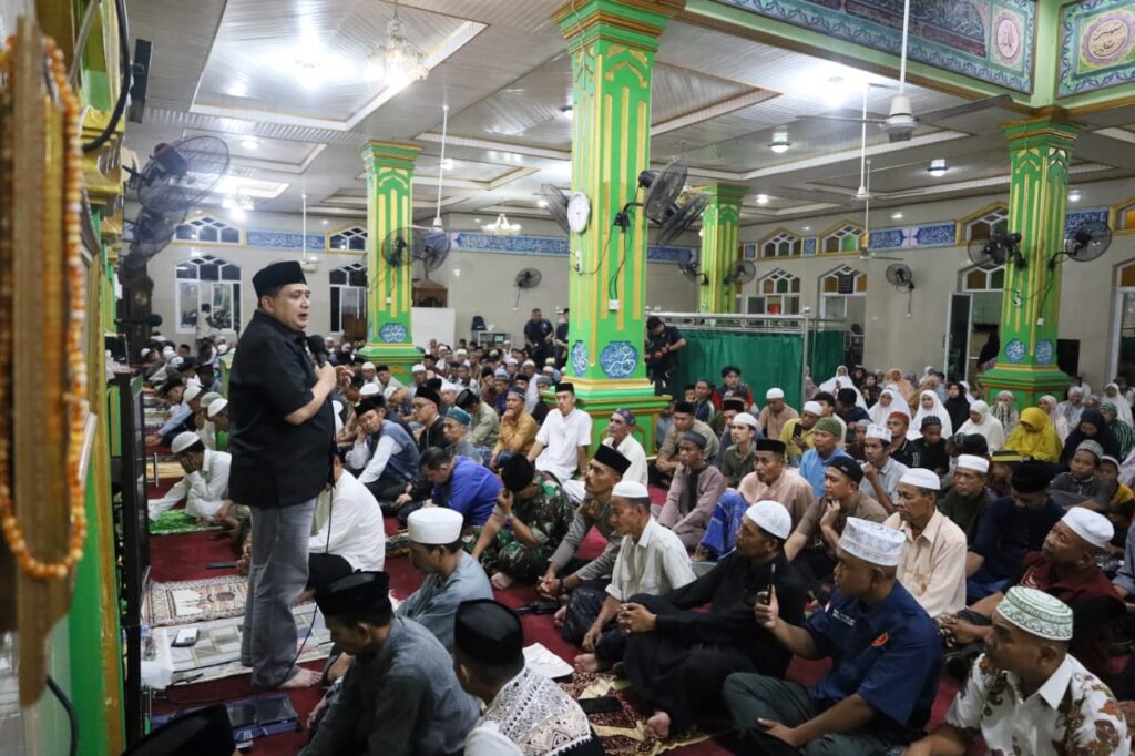 Bhabinkamtibmas Bersama Tim PPKM Kalegowa Pasang Spanduk dan Sticker Imbauan Prokes