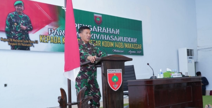 MAKASSAR, EDELWEISNEWS.COM – Panglima Kodam (Pangdam) XIV/ Hasanuddin Mayjen TNI Mochamad Syafei Kasno, SH melakukan kunjungan kerja (Kunker) di Kodim 1408/BS Jl. Lanto Daeng Pasewang Makassar, Selasa (10/8/2021).