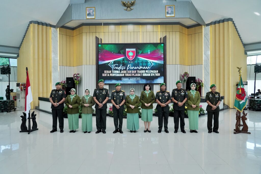 Sertijab dan penyerahan tugas ini berlangsung khidmat dan penuh makna, dihadiri oleh para pejabat utama Kodam XIV/Hasanuddin, Komandan Satuan (Dansat) jajaran, serta Ketua dan pengurus Persit Kartika Chandra Kirana PD XIV/Hasanuddin. (*)