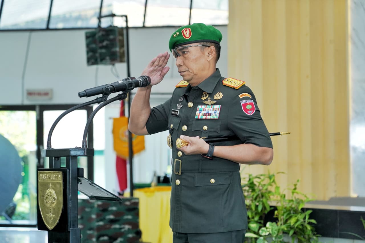 MAKASSAR, EDELWEISNEWS.COM – Pangdam XIV/Hasanuddin Mayjen TNI Windiyatno memimpin acara Tradisi Penerimaan, Serah Terima Jabatan (Sertijab), dan Tradisi Pelepasan Danrem 142/Tatag, Aspers Kasdam XIV/Hasanuddin, serta Penyerahan Tugas Kababinminvetcaddam dan Kasetumdam XIV/Hasanuddin, bertempat di Balai Pertemuan Hasanuddin (BPH) Makodam, Jalan Urip Sumoharjo, Kota Makassar, Jumat (10/10/2025).