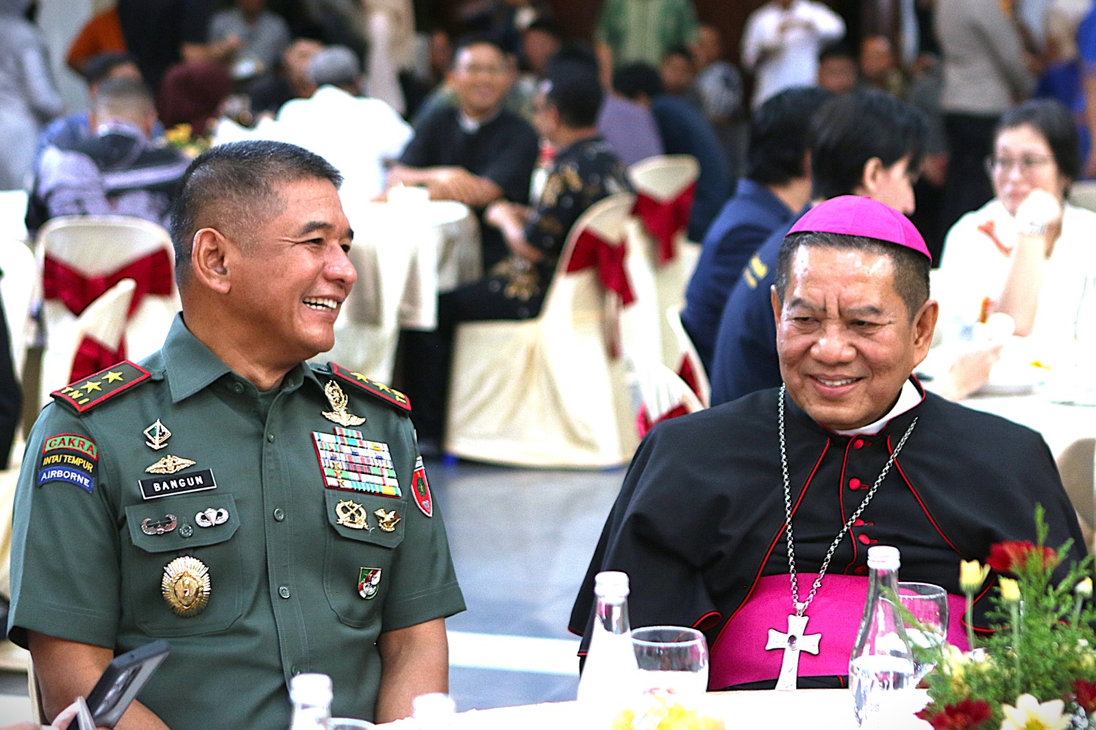 MAKASSAR, EDELWEISNEWS.COM — Pangdam XIV/Hasanuddin Mayjen TNI Bangun Nawoko menghadiri acara Open House dan Silaturahmi Natal yang diselenggarakan oleh Keuskupan Agung Makassar, bertempat di Aula Mgr. Seheinders, CICM, Keuskupan Agung Makassar, Jalan Thamrin, Kota Makassar, Jumat (26/12/2025).