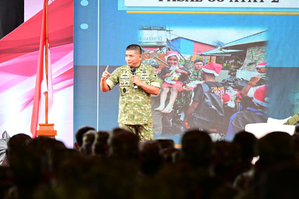 GOWA, EDELWEISNEWS.COM – Pangdam XIV/Hasanuddin Mayjen TNI Bangun Nawoko memberikan materi pembekalan kepada para Kepala Desa peserta Jambore Kepala Desa se-Sulawesi Selatan yang digelar di Rindam XIV/Hasanuddin, Jalqn Malino, Pakatto, Kab. Gowa, Jumat (12/12/2025).