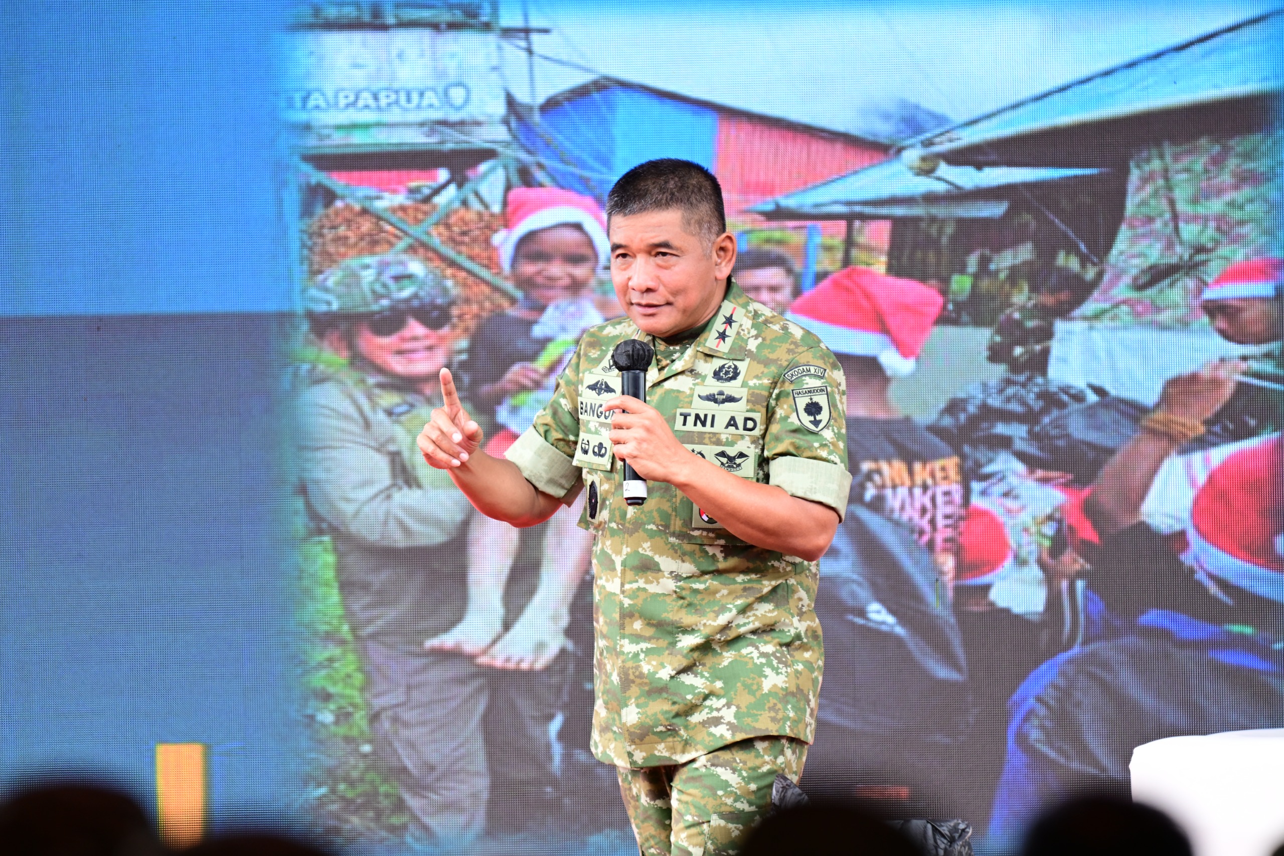 GOWA, EDELWEISNEWS.COM – Pangdam XIV/Hasanuddin Mayjen TNI Bangun Nawoko memberikan materi pembekalan kepada para Kepala Desa peserta Jambore Kepala Desa se-Sulawesi Selatan yang digelar di Rindam XIV/Hasanuddin, Jalqn Malino, Pakatto, Kab. Gowa, Jumat (12/12/2025).