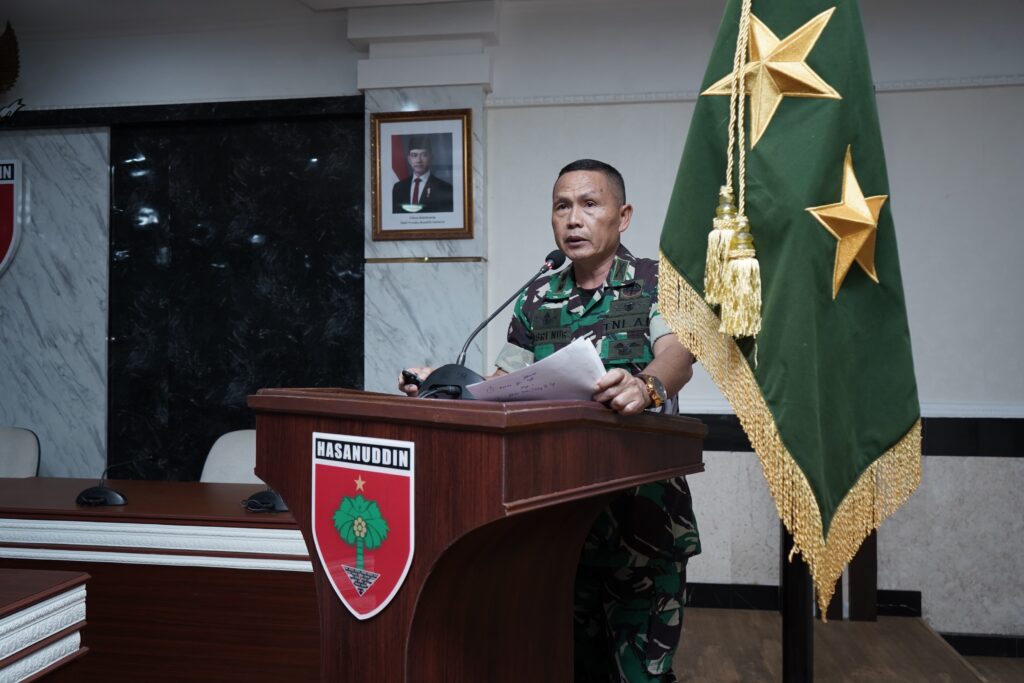 MAKASSAR, EDELWEISNEWS.COM – Pangdam XIV/Hasanuddin Mayjen TNI Windiyatno menerima paparan Rencana Garis Besar (RGB) kegiatan Korps Kadet Republik Indonesia (KKRI) Triwulan IV TA. 2025, yang disampaikan oleh Komandan Depo Pendidikan (Dandodik) Bela Negara Rindam XIV/Hasanuddin Letkol Inf Basri Nur, S.Sos.bertempat di Ruang Bina Yudha (RBY), Makodam, Jalan Urip Sumoharjo, Kota Makassar, Jumat (24/10/2025).