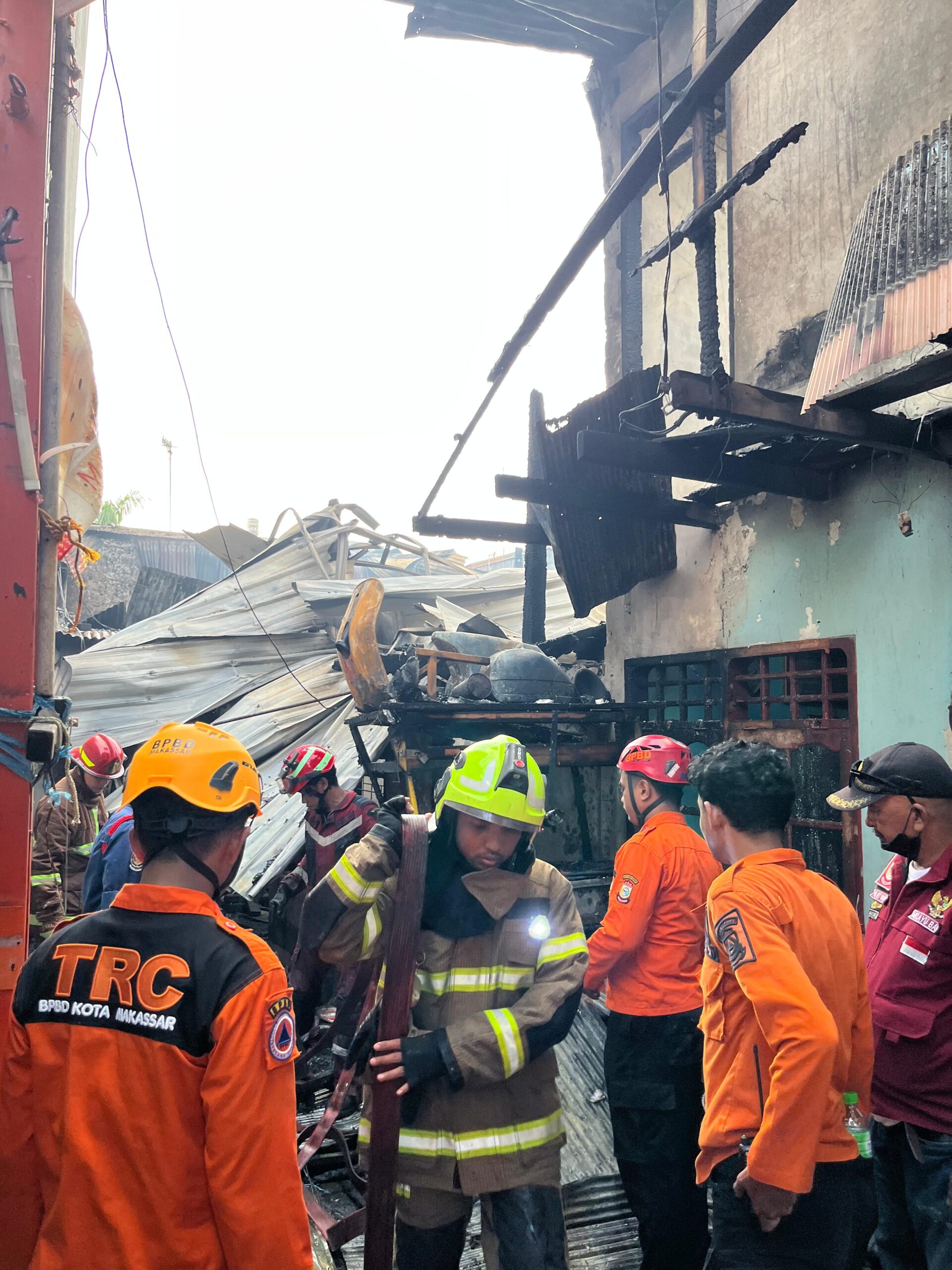 Untuk menangani musibah kebakaran tersebut, Damkar Makassar mengerahkan 10 armada Damkar. Petugas/relawan yang terlibat dari BPBD, Damkar, Polri, TNI dan PLN.