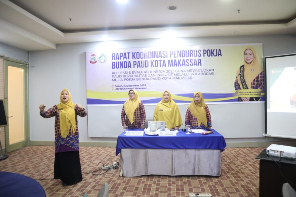 MAKASSAR, EDELWEISNEWS.COM — Pokja Bunda PAUD Kota Makassar menggelar Rapat Koordinasi Pengurus sebagai momentum refleksi dan evaluasi kinerja tahun 2025. Kegiatan ini berlangsung di Hotel Aryaduta Makassar, Senin (15/12/2025), dengan mengusung tema “Refleksi dan Evaluasi Kinerja 2025 Guna Mewujudkan PAUD Berkualitas dan Inklusif melalui Kolaborasi Mulia Pokja Bunda PAUD Kota Makassar.”