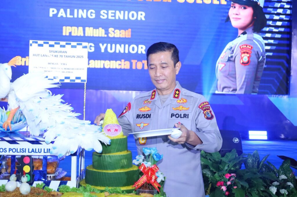 MAKASSAR, EDELWEISNEWS.COM – Kepolisian Daerah Sulawesi Selatan (Polda Sulsel) menggelar syukuran dalam rangka memperingati Hari Lalu Lintas Bhayangkara ke-70 Tahun 2025. Kegiatan berlangsung di Aula Mappaoddang Mapolda Sulsel, Senin (22/9/25), dengan mengusung tema “Lalu Lintas Modern yang Berkeselamatan Menuju Indonesia Emas”.