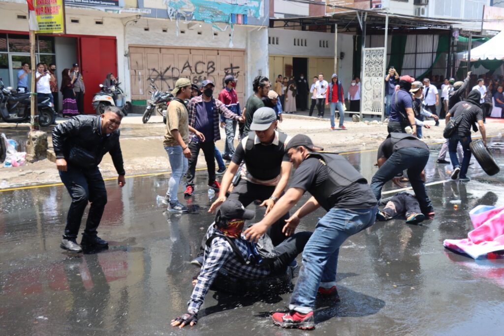 Situasi semakin anarkis, dan untuk mengatasi hal ini, Tim Patroli Perintis Presisi Sat Samapta Polres Gowa dan Wanteror, Den 45 Patmor dan PHH Sat Brimobda Polda Sulsel turun tangan dengan menggunakan tembakan gas air mata untuk membubarkan massa. Melalui tindakan ini, konsentrasi massa terpecah sehingga situasi dapat kembali kondusif.
