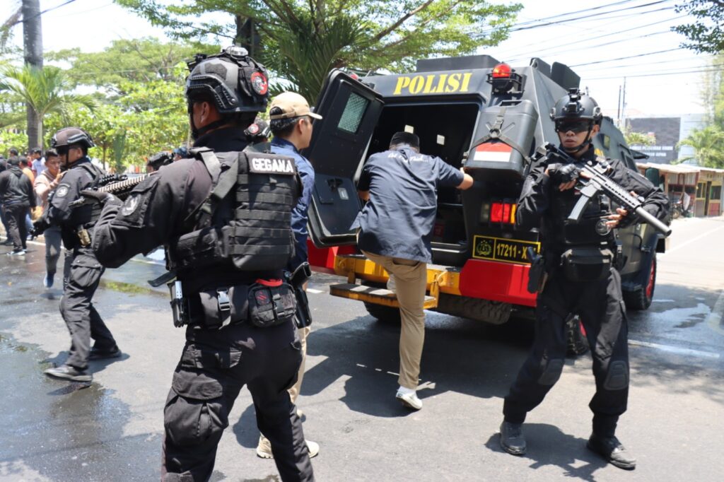Pengamanan dalam simulasi ini ditingkatkan dengan melibatkan pasukan pleton dalmas awal dan pleton negosiator. Ketika massa semakin tidak terkendali dan terjadi pembakaran serta pelemparan batu, petugas menggunakan kendaraaan taktis Armoured Water Cannon (AWC) Sat Samapta Polres Gowa untuk membubarkan massa.