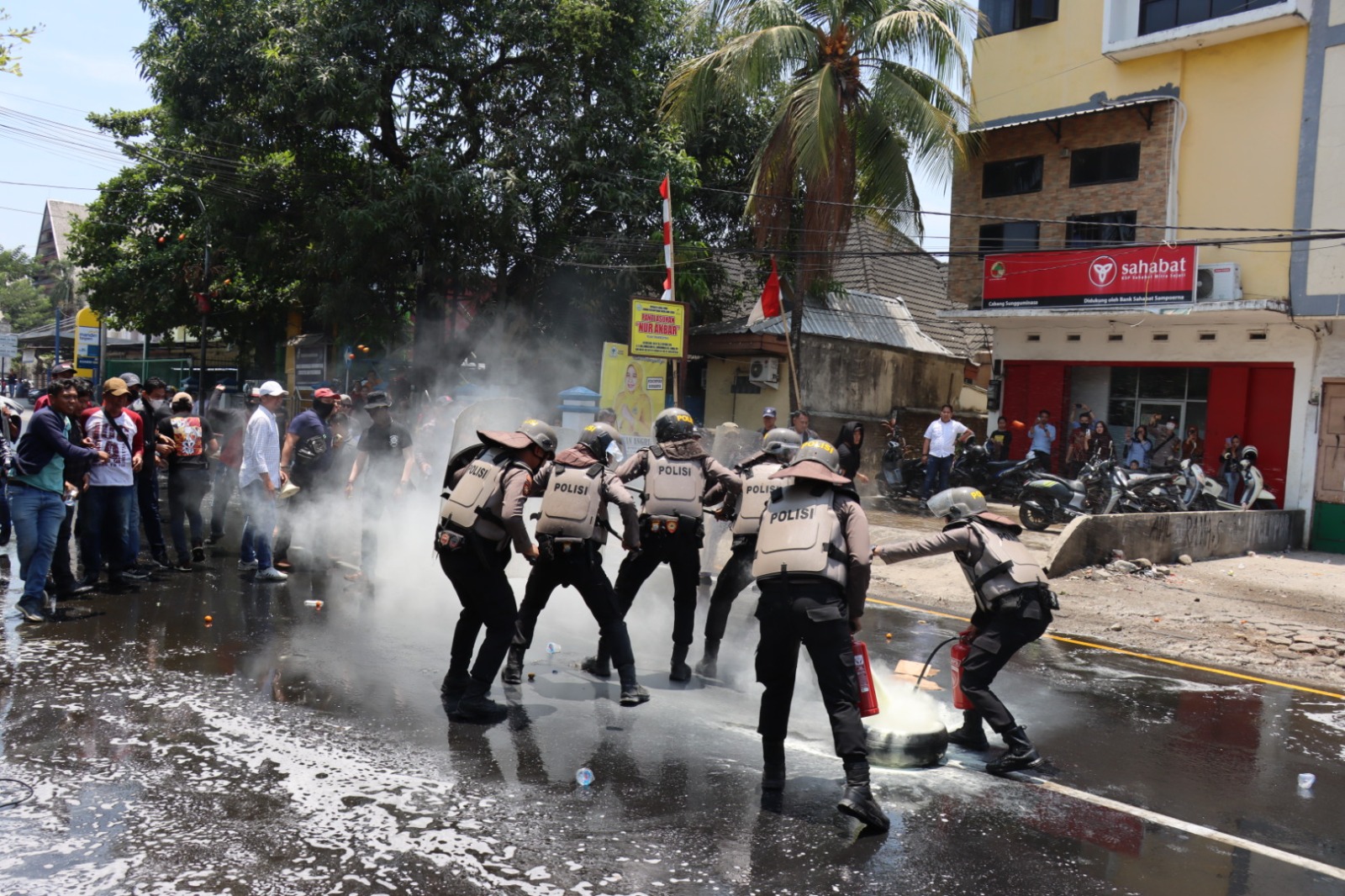 Situasi semakin anarkis, dan untuk mengatasi hal ini, Tim Patroli Perintis Presisi Sat Samapta Polres Gowa dan Wanteror, Den 45 Patmor dan PHH Sat Brimobda Polda Sulsel turun tangan dengan menggunakan tembakan gas air mata untuk membubarkan massa. Melalui tindakan ini, konsentrasi massa terpecah sehingga situasi dapat kembali kondusif.