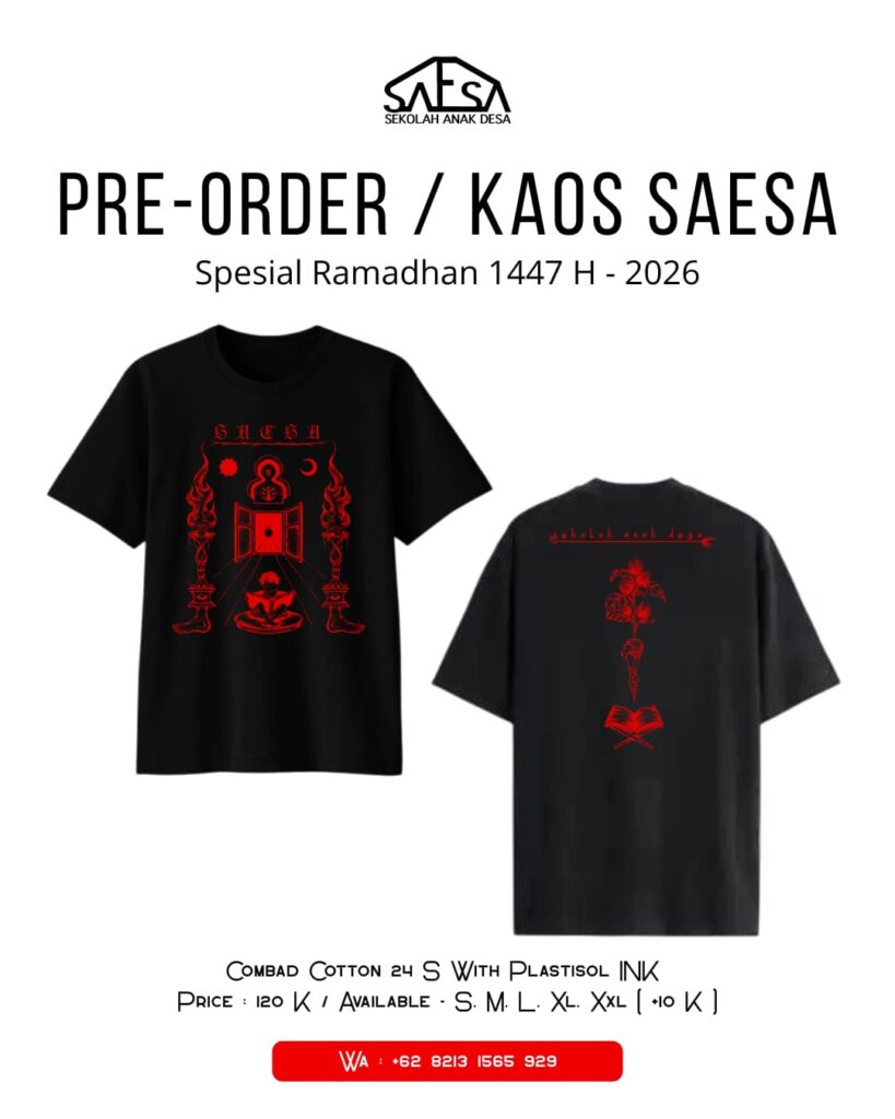 Informasi pemesanan tersedia melalui Instagram @sekolahanakdesa, X @rumahbukusaesa, X @book.merchs, serta WhatsApp 082131565929.