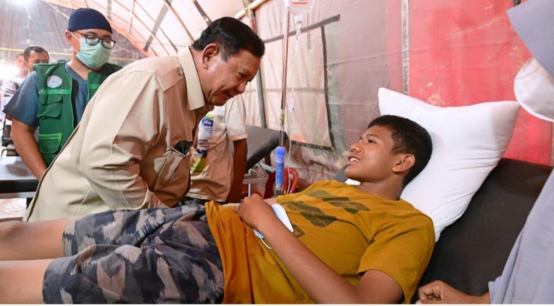 Setibanya di posko pengungsian, Presiden Prabowo disambut antusiasme anak-anak yang menyambut dengan nyanyian, “Selamat datang, Bapak.” Setelahnya Presiden Prabowo menuju posko kesehatan yang tengah memberikan layanan medis kepada warga terdampak.