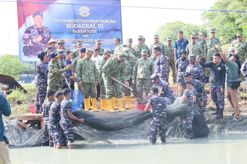 “Kita tidak hanya memanen hasil bumi, tapi juga kembali menanam harapan melalui panen ikan dan tebar benih ikan hari ini,” ujar Dankodaeral VI.