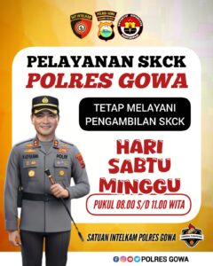 GOWA, EDELWEISNEWS.COM – Polres Gowa terus berkomitmen memberikan pelayanan prima kepada masyarakat. Melalui Satuan Intelkam, Polres Gowa tetap membuka pelayanan pengambilan Surat Keterangan Catatan Kepolisian (SKCK) pada hari Sabtu dan Minggu, mulai pukul 08.00 hingga 11.00 WITA. Kebijakan ini merupakan inovasi langsung Kapolres Gowa, AKBP Muhammad Aldy Sulaiman, S.I.K., M.Si, sebagai bentuk peningkatan kualitas pelayanan […]