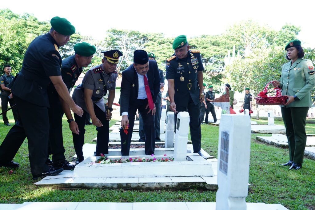 Dalam rangkaian kegiatan, Pangdam meletakkan karangan bunga dan memimpin tabur bunga sebagai bentuk penghormatan kepada para pahlawan yang telah gugur memperjuangkan bangsa. Seluruh peserta turut memberikan penghormatan secara khidmat.